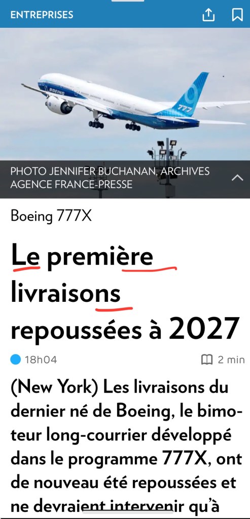 Il aurait fallu lire Les premières livraisons, le nom livraisons donnant son genre et son nombre au déterminant et à l’adjectif numéral. Le titre a fini par être corrigé, mais plus d’une journée après sa parution.