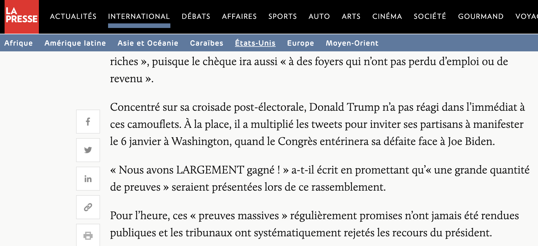 Seul bémol, on égratigne quelque peu l’équipe de TVA Sports. On explique les propos peu orthodoxes, mais rendus dans une « langue raffinée », de Frédéric Lord à la description des matchs de soccer. Également, le billet s’en prend indirectement au fameux « Et compte ! » de Félix Séguin, lorsqu’il décrit un but au hockey. Citant Pierre Houde, Alexandre Pratt mentionne que René Lecavalier regrettait d’avoir popularisé cette expression, expliquant qu’on peut compter des objets, qu’on peut compter sur quelqu’un, mais qu’on ne peut pas compter un but. C’est la raison pour laquelle lors de ses dernières années au micro, le célèbre descripteur des joutes présentées à La Soirée du hockey avait remplacé son « Il lance et compte ! » par « Le tir et le but ! », repris par presque tous ses successeurs.