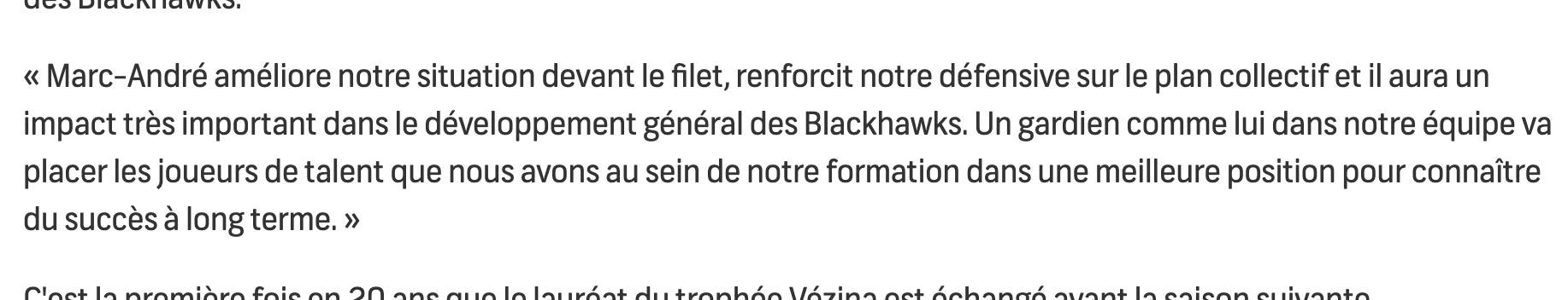 D’abord, dans le deuxième paragraphe d’un article publié sur le site de TVA Sports, on pouvait lire ceci :