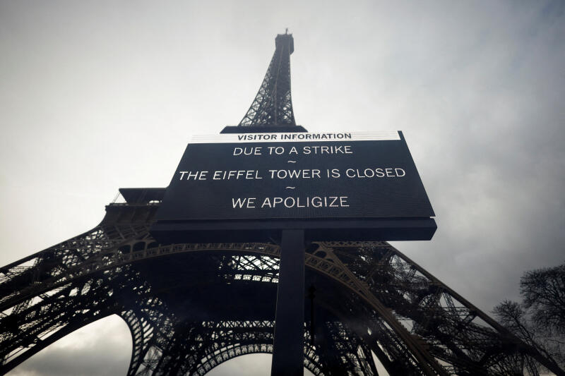 Chers cousins français, que diriez-vous d’ajouter quelques lignes à votre affiche ? Par exemple, « Information aux visiteurs : En raison d’une grève, la Tour Eiffel est fermée. Nous nous en excusons. »
