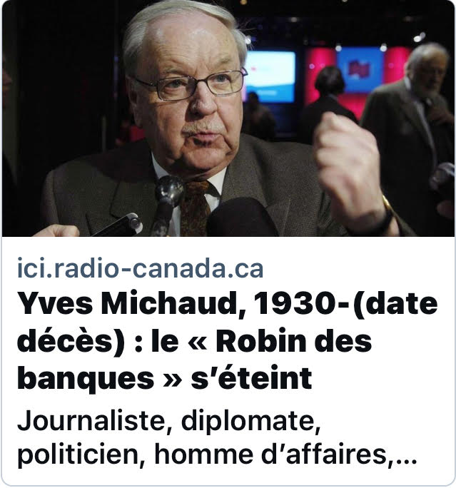 Je présume qu’il en est de même pour les parutions en ligne sur Radio-Canada.ca, selon ce que j’ai pu constater mercredi, lors du décès d’Yves Michaud. Même si le sujet a été préparé, il faut procéder à une dernière relecture pour assurer un professionnalisme minimal avant de le diffuser. Voici ce qui a été publié :